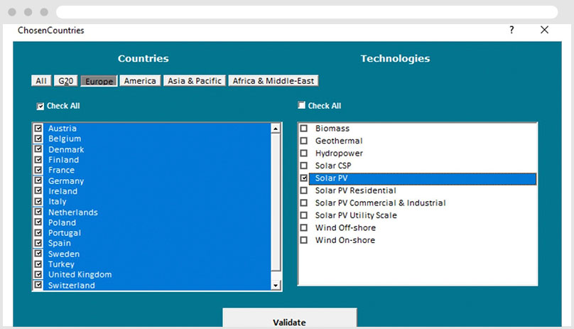 只需单击几下,即可访问有关热能和可再生能源发电成本的独特优质数据。将我们详细、可靠的信息用于您的项目并对其进行基准测试。