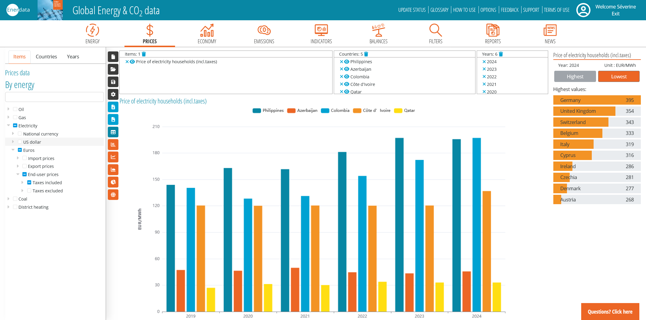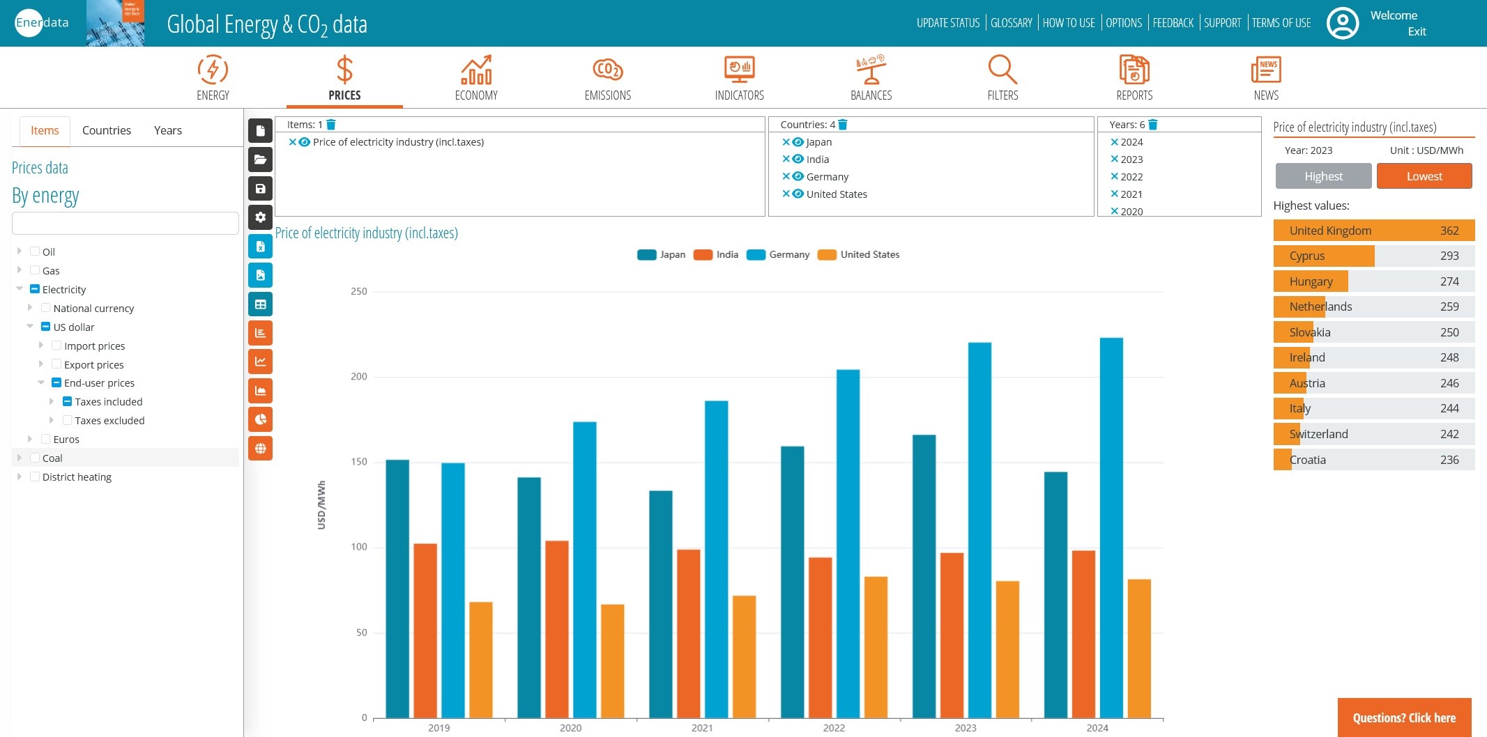 - 家庭及工业终端用户价格以本国货币、美元、欧元计价,同时提供现行(名义)与不变(实际)价格